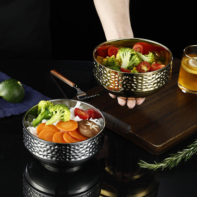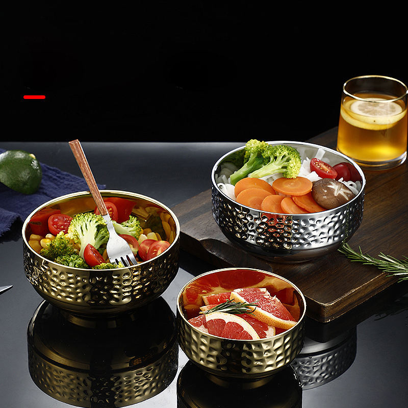 304 Stainless Steel Food Bowl Double Layer Heat Insulation Household Rice Pot Noodle Dish Golden